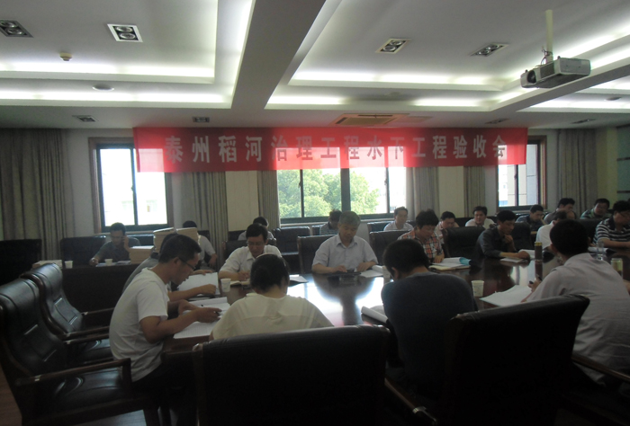 驗收組實地查看了上下游護坡、閘室墻、閘室底板、底軸驅動式翻板閘門等稻河閘工程水下結構部分,認真聽取了工程建設、設計、施工、監理單位的工作報告,聽取了工程質量檢測意見、工程質量監督意見,仔細查閱了工程檔案資料,經過與會專家充分討論后,認為泰州稻河治理工程已按設計要求完成水下工程,工程施工符合設計要求,滿足規范規程,工程檔案資料規范齊全,同意通過水下工程階段驗收。