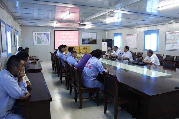 田紀榮主任詳細了解了項目工程建設的進展情況,親切詢問了一線員工的飲食起居和工作情況,高度贊揚了江蘇水建廣大員工長期以來為全省水利建設所作出的貢獻,并叮囑大家一定做好高溫期間的防暑降溫和安全生產工作,提高應對高溫中暑的自我保護意識,克服高溫困難保質保量保安全地完成重點工程的建設。同時要求項目部采取有效措施,切實改善員工高溫施工、飲食居住等生活工作條件,科學合理地調整工作時間,進一步落實安全生產責任制,消除各類安全隱患,確保廣大員工度過一個健康、安全的夏季。