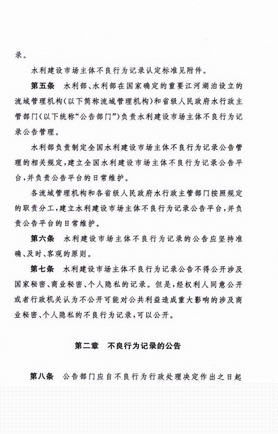 水利建設市場主體不良行為記錄公告暫行辦法