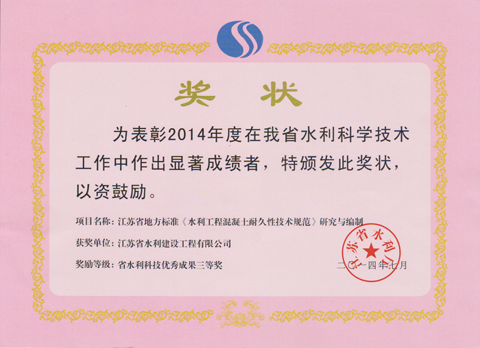 省水利科技優(yōu)秀成果三等獎(jiǎng)