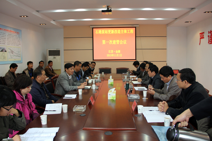 我公司朱學(xué)林董事長在會上表態(tài),公司將和項(xiàng)目部一道,針對本工程的技術(shù)特點(diǎn)和施工難點(diǎn),采取積極有效的措施,抓好各項(xiàng)施工管理工作,確保優(yōu)質(zhì)高效地建好石港泵站工程,為淮河入江水道工程建設(shè)再立新功。