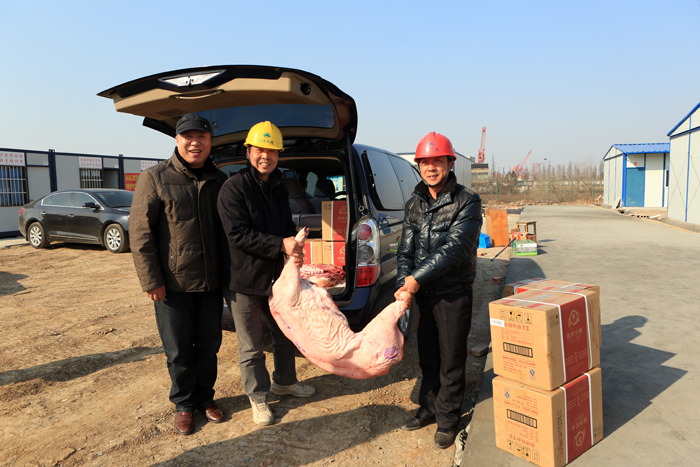 1月中旬,公司總經理夏國春和黨委副書記、工會主席姜啟生率隊慰問了多個在建工程項目部。慰問組準備了肉、魚等慰問品,來到一線工地,將公司的關心、關愛和溫暖傳遞給最前線的職工手中,鼓勵大家鼓足干勁沖刺春節前夕的施工大會戰。各項目部將公司的人文關懷轉化為加緊施工的動力,齊心協力完成了節前施工任務。