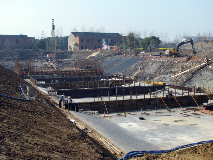 目前,新溝河江邊樞紐船閘主體工程正緊張有序地展開施工,閘室已封底,并分節(jié)開始底板立模扎筋。