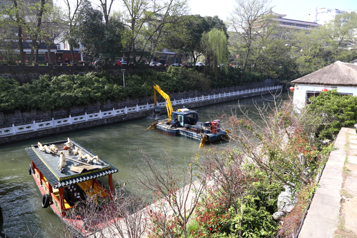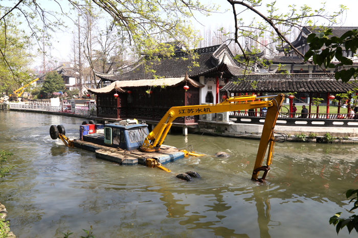 在揚州最美麗的季節(jié)即將到來之際,水機公司調(diào)集兩棲式清淤機,對御碼頭至瘦西湖水上游覽線進行清淤,為揚州“煙花三月”經(jīng)貿(mào)旅游節(jié)疏通黃金水道。