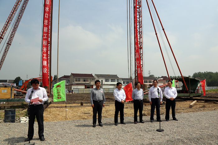 開工儀式現場簡樸、高效,雖然沒有設置主席臺,也沒有鮮花氣球,但樁架上垂下的標語“加快民生工程建設,打造名城幸福之源”同樣揭示了工程的主題——這將是一個惠及千家萬戶的民生工程、市政府重點工程。而高效則體現在程序安排上,在主持人揚州自來水公司總經理岳兵介紹基本情況后,揚州城控集團總經理劉鴻賓對工程建設提出了工作要求,我公司夏國春董事長代表施工單位作了表態發言,其后由揚州城控集團董事長劉曉明宣布工程開工。簡短的開工儀式,核心內容都是緊緊圍繞該工程建設目標,抓好質量、進度、安全控制,一著不讓,積極推進工程建設進展,確保優質高效地建好這一民生重點工程。