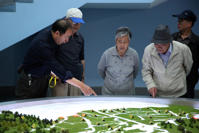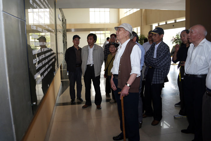 在參觀周總理生平展覽時,多名老同志熱淚縱橫,嘴里念著“人民的好總理,向總理學習!”、“總理呀,我們想念您!”的話語,周總理所代表的黨的光輝形象再次深深印入老同志的心坎上。在安瀾展示館,老同志們走過了“歷史淮河、今日淮河、未來淮河”三個展廳,當一座座發揮著效益的水工建筑物模型和照片映入老同志眼簾時,他們又找到自己當年參建的身影,作為一名水利人的自豪感油然而生,熱血涌上心頭,映紅了臉龐。