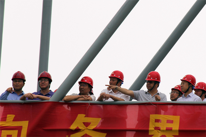 葉健一行實地查看了泰州引江河第二期工程河道工程和二線船閘工程施工現場,詳細詢問了工程建設進展情況及施工過程中遇到的困難。在聽取省泰州引江河第二期工程建設局負責同志關于工程建設情況的匯報后,葉健指出,泰州引江河第二期工程戰線長、要求高、施工難度大、施工干擾多,工程自2012年12月開工建設以來,參建各方克服困難、嚴格要求、堅持“三創”,二線船閘已通過水下階段驗收,河道工程總體進展良好,并取得了一些榮譽,對此表示充分肯定。對下一階段工作,葉健提出明確要求:一要進一步理清下一階段工作思路,針對工程建設進展,研究不同時期不同難點、關鍵點,有重點地開展工作;二要進一步加強質量控制和管理,特別要加強河道工程排泥場圍堰質量的控制和管理,延續并探索好的施工方法和經驗;三要進一步加強科技創新課題研究,在工程建設過程中要加強創新,善于總結;四要進一步加強工期管理,協調相關矛盾,針對工程建設實際,及時調整工期安排,為順利實現工程建設目標打好基礎;五要加強安全管理,針對后續施工特點,加大巡查、整改力度,做到警鐘長鳴;六要加強工程投資控制,加強過程控制,重大設計變更需及時報批;七要加強組織協調,注重調動各方積極性;八要注重工程建設過程中的宣傳工作。葉健強調,參建各方要珍惜機遇、密切協作、加強管理,確保工程建設各項目標任務順利完成。