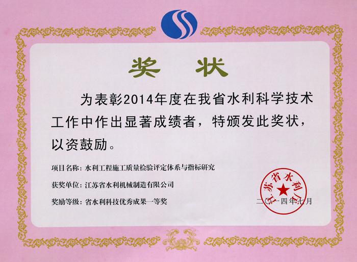 近期,公司和省水機公司參加的“水利工程施工質量檢驗評定體系與指標研究”項目獲“省水利科技優秀成果一等獎”,公司機安分公司王杰良、省水機公司徐龍等同志分別參加了相關部分的研究和編制。