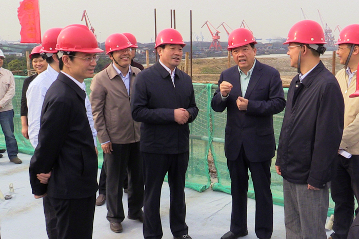 在江邊樞紐工地,徐鳴詳細了解了工程建設進度。目前該工程船閘閘室主體已完成,正在進行上下閘首、導航墻等部位施工;閘站工程于10月初開始地表清理和初期土方開挖,正在填筑下游施工圍堰。徐鳴對工程建設所取得的成績表示肯定,希望施工單位在加快工程建設進度的同時,保證工程質量,確保施工安全。同時他要求地方政府善始善終,加快做好征地拆遷等工作,為工程建設創造和諧的環境。