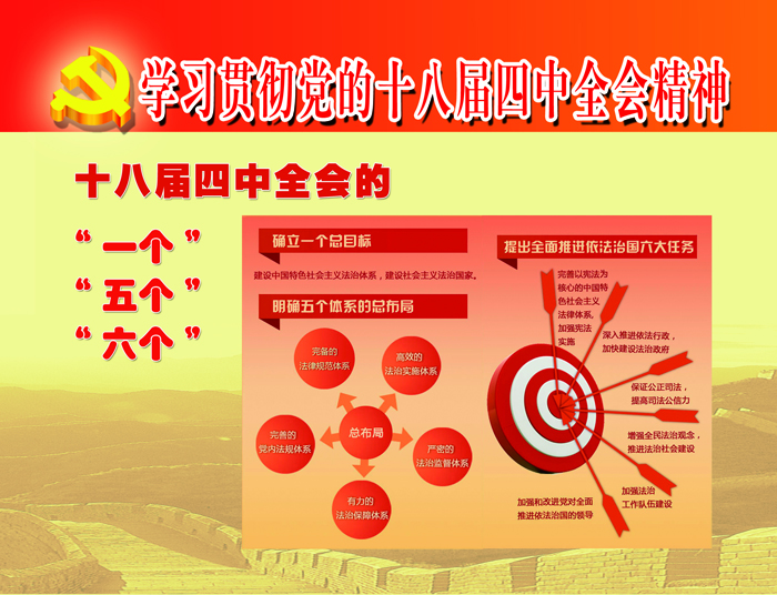 公司本部第一黨支部根據黨委工作部署,制作了學習貫徹十八屆四中全會精神宣傳標牌,并在公司企務公開欄張貼宣傳。宣傳標牌將《中共中央關于全面推進依法治國若干重大問題的決定》的總體框架和主要內容分為一個總目標、五個體系的總布局和提出全面推進依法治國六大任務。通過條理清晰、淺顯易懂的圖文和條目式的內容解讀,使廣大職工能夠更加直觀地領會會議精神,提高學習效果。