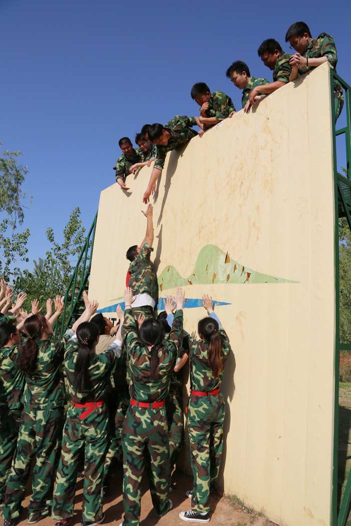 大家挑戰心理極限,勇敢地完成“高空斷橋”;鍛煉腦力、拓展思維合作完成“數字競猜”;合理分工、有效規劃、分工明確完成“生死電網”。一項一項的訓練緊張地進行著,大家很快地融入了集體,激情高漲,互相鼓勵,領導的協調力、團隊的協作力得到了充分發揮。在最后的畢業墻項目中,當隊員們踩著同事的腿,跨上另一個同事的肩膀,握上頭頂一雙雙溫暖的大手,輕松翻越了