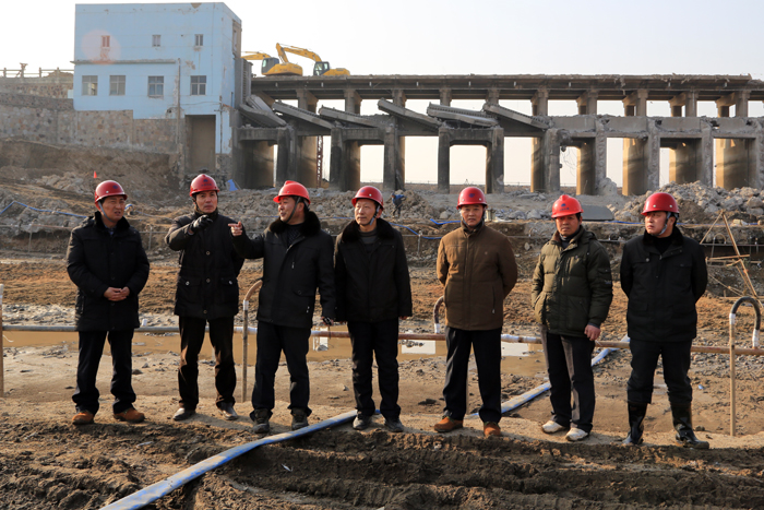 下午,公司朱學林董事長、建設處丁淮波主任、監理處王國強總監等一行,在駐守該工程的常務副總經理時愛祥、項目經理李新海的陪同下,仔細察看了工程現場,慰問了正在上班的一線工人,并召開了一個簡短的碰頭會,就工地目前存在的情況交換了意見。自1月14日項目先遣人員到工地現場以來,20多天時間已完成閘塘抽水,開始老閘拆除和基坑降排水,并利用一組廢舊的化工廠廠房,建起了臨時生活和辦公用房。在項目部的春節生產計劃中,一個“急”字讓這個春節搶工變得格外的沉重——原本采取降水措施后即開始機械開挖基坑,因地下水極為豐富,不得不暫時中斷施工,等待具備條件才能進行土方開挖。而這又使本已極為緊迫的工期比原節點計劃滯后10多天。春節前項目部邀請公司多位專家反復商量,苦思良策。針對這種情況,項目部將“慢性病”當作“急病”醫,始終立足一個“搶”字:正月初二繼續在圍繞基坑一圈的輕型井點內側再施打一圈輕型井點;正月初四開始沖土作業,降水與水力沖土雙管齊下,咬定目標,搶抓時間,加班加點,全力推進,一點點地破解難題。
