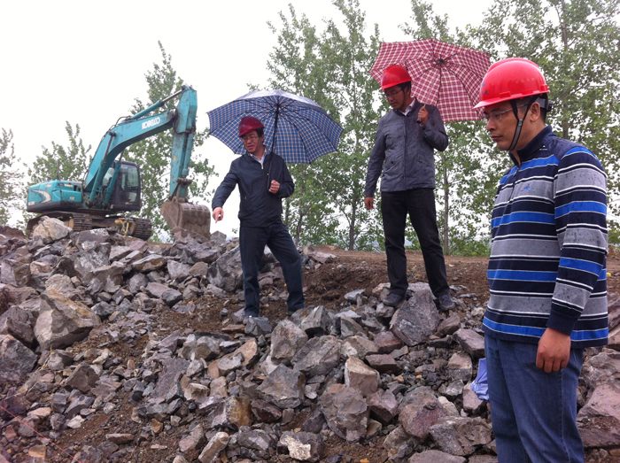 56上午,公司總經理夏國春、工程部主任顧大冬、安全技術部副主任鄧興杰在項目經理楊朝光的陪同下,冒著蒙蒙細雨來到運河西堤崇灣北段施工現場,檢查指導工程施工。檢查組對工程施工進度、質量、安全表示滿意,要求項目部全體人員要充分認識到淮河入江水道工程的重要性、緊迫性,把工程安全、質量、進度和成本控制貫穿于施工全過程,確保圓滿完成工程施工任務。
