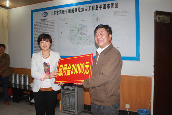 慰問(wèn)中,李榮錦用“嚴(yán)謹(jǐn)、高效、有力的組織”和“建設(shè)周期之短、推進(jìn)速度之快”來(lái)贊賞泗陽(yáng)閘工程建設(shè),并對(duì)工程建設(shè)者們?yōu)殂絷?yáng)地方經(jīng)濟(jì)社會(huì)發(fā)展所作的努力表示衷心地感謝。李榮錦說(shuō),泗陽(yáng)閘建設(shè)是我縣閘橋改造工程中最重要的環(huán)節(jié),對(duì)城市未來(lái)發(fā)展極其重要,如果不是閘橋建設(shè)的及時(shí)實(shí)施,我縣迎賓大道將推遲通車(chē)一年。在工程建設(shè)過(guò)程中,泗陽(yáng)與工程建設(shè)處、閘站管理所形成了相互協(xié)作、相互配合、相互支持、相互信任、相互理解的良好格局,希望雙方能夠在以后的合作中繼承這種精神,不斷發(fā)揚(yáng)光大。